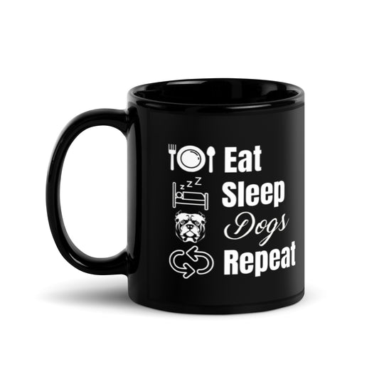 Eat Sleep Dogs Repeat - Black Glossy Mug