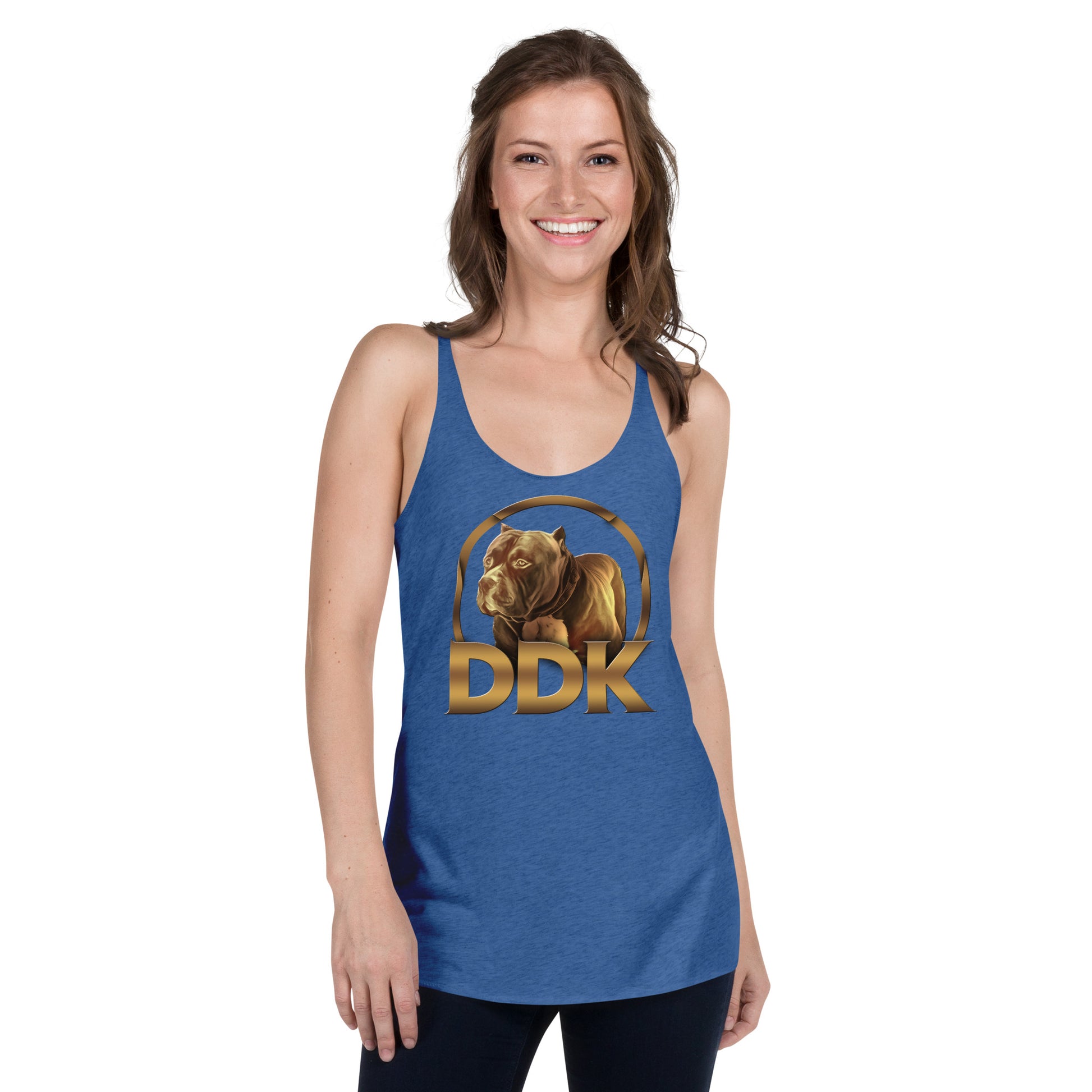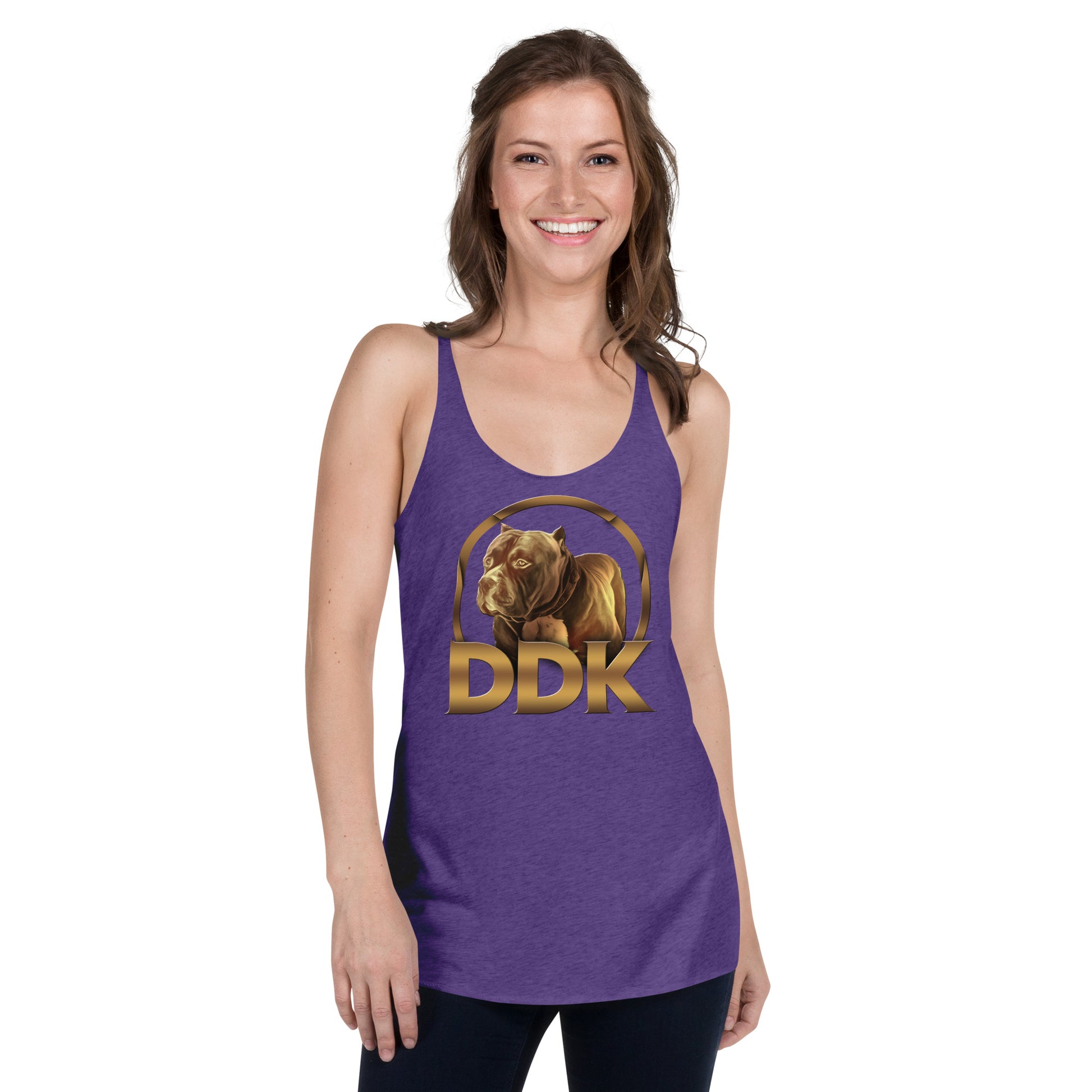 This racerback tank is soft, lightweight, and form-fitting with a flattering cut and raw edge seams for an edgy touch.